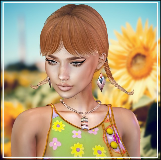 ♥EARRINGS: MINA – Hattie – @the ARCADE @the ARCADE Hattie is a versatile updo hair with a headband. The hair itself comes with headband textureHUD one, a StyleHUD with lots of options to style the hair (bangs or no bangs, neat or messy bun with curly or more straight tufts) and a fitted and unrigged version.You can also play for more headbandHUDs, each HUD has 6 more textures for you to play with..On top of it all I made 4 sets of matching earrings! The also come with a HUD to change the metal textures and disks. There are 13 commons and 3 rares in the Arcade Gacha machine.The Arcade opens June 1, 2019 @ 12:00 am The Arcade closes June 30, 2019 @ 11:59 pm