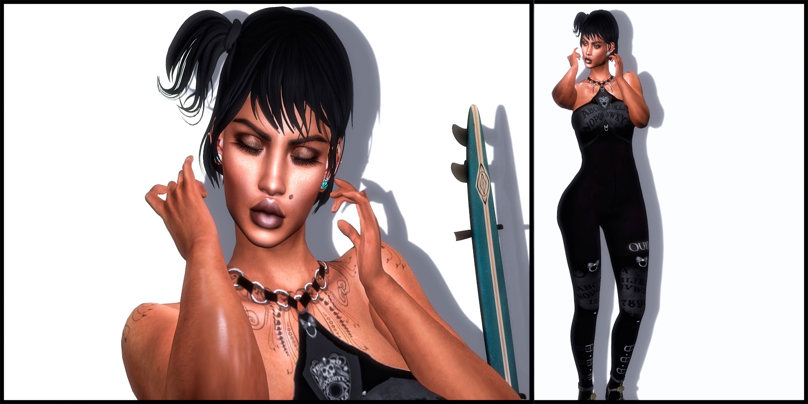 ♥OUTFIT: BEAUTY OF DARKNESS BOD- Multi Appliers outfit – F HUD- Ouija Bodysuit @Gothic Garage Sale