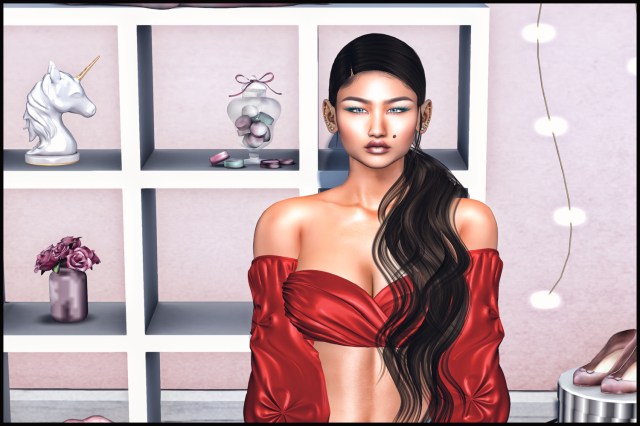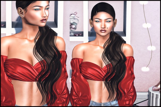 I did a little collab with Salt & Pepper on this, but unfortunately we are not in the same event, so the matching INTERACTIVE WET T-SHIRT CONTEST items from S&P, are going to be released at The Arcade, starting at the same date as FaMESHed, June 1st. The hair reacts to the S&P shower, S&P watergun and the quick dry towel from Salt & Pepper.