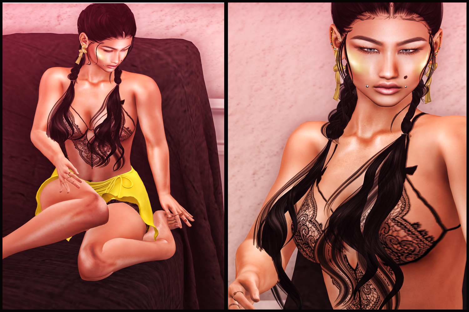 for @Collabor88 I am very excited to be a guest designer of the May round of Collabor88! The theme is Urban Gypsy and thats sooo MINA 😉 Yelena is a hairstyle with long braids and comes with a styleHUD with three options to change the look. Collabor88 opens on May 8th  As always I will place a demo in the mainstore once the event starts.