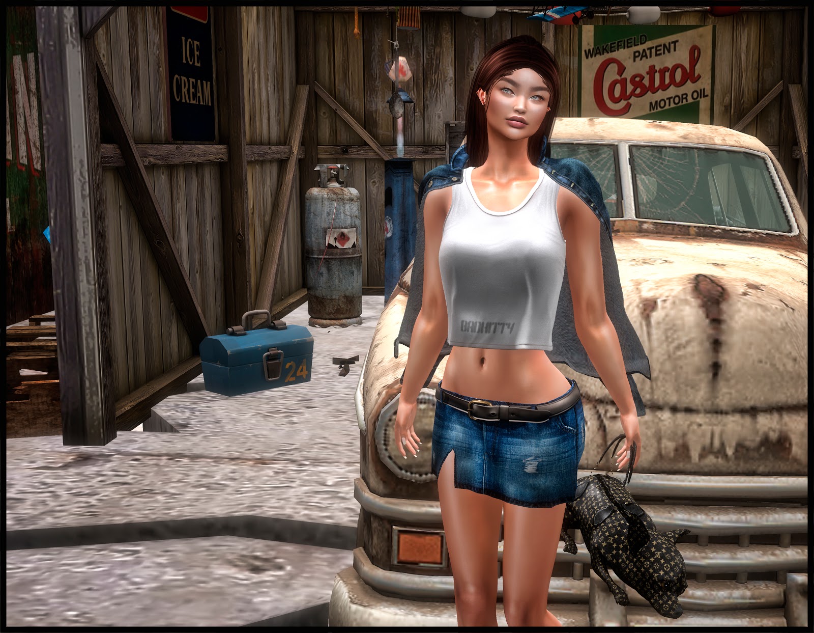 ::GB::Denim jacket / Blue TANK TOP FOR MAITREYA AND SLINK SIZE JACKET MAITREYA AND SLINK SIZE ::GB::Denim skirt / Blue / Maitreya SIZE MAITREYA