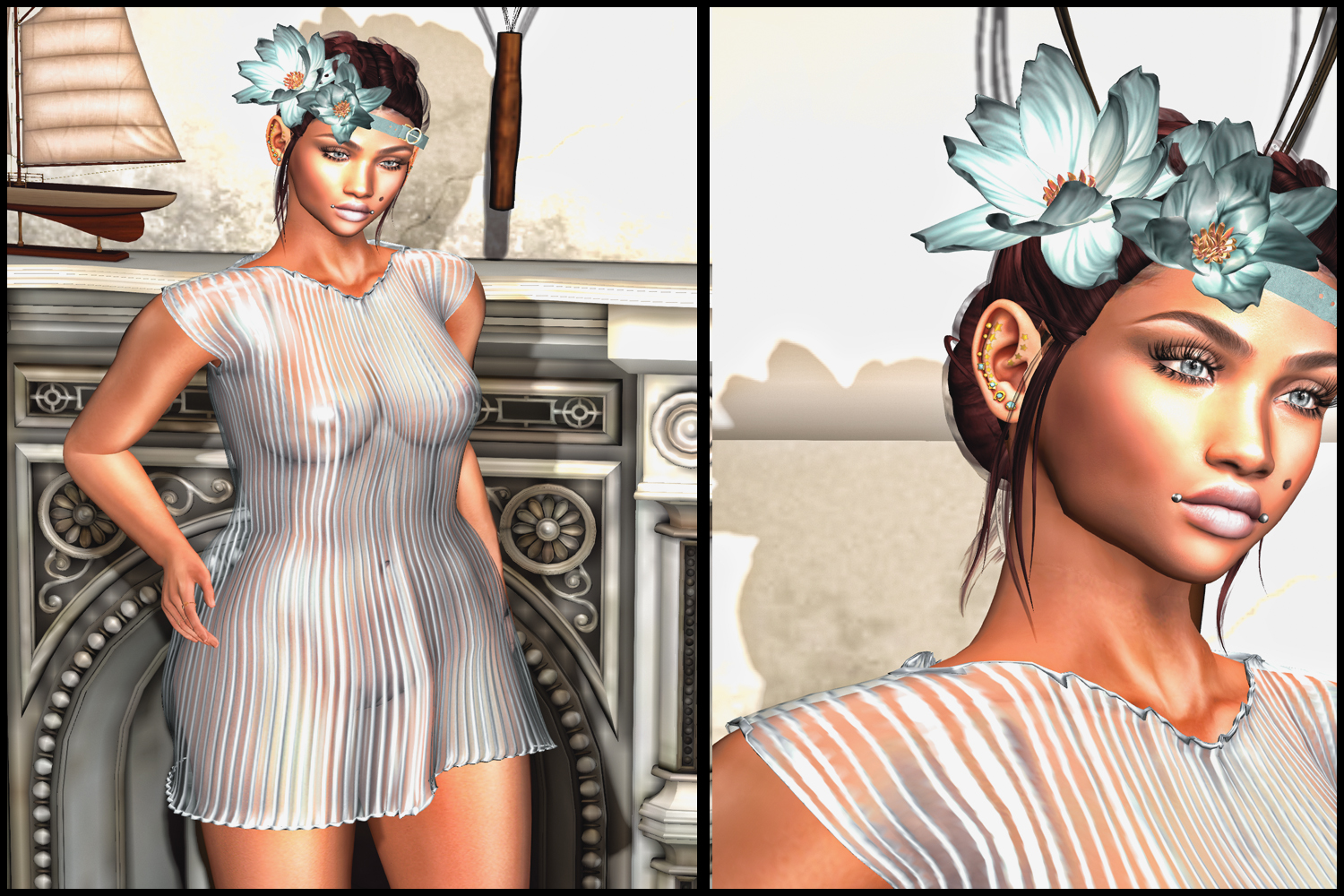 MINA Hair – Alison for Enchantment Enchantment will open on Saturday, May 12th (noon slt) and will last until the end of the month. This rounds theme is: Alice in Wonderland Alison is a long windy hairstyle in a fitted and an unrigged version.