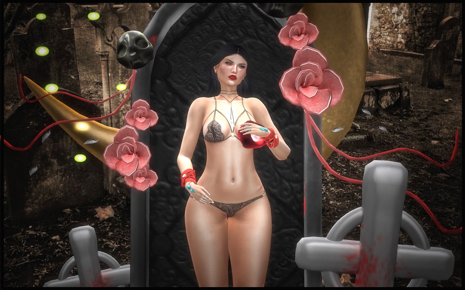 ♥POSE: Yokai – Vampire’s House Yokai – Skull for pose 1 (Click to change color)@PANDORA BOX JUNE