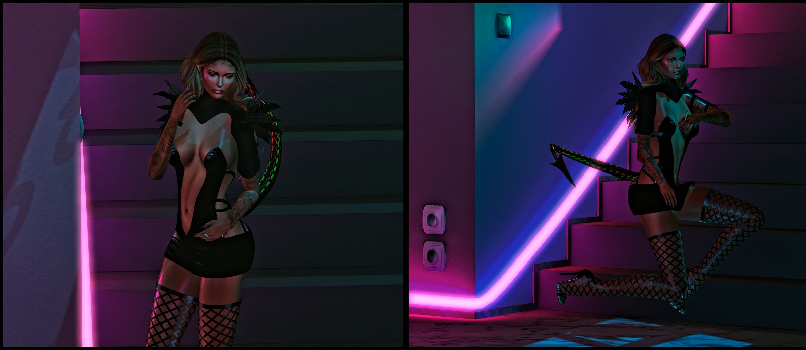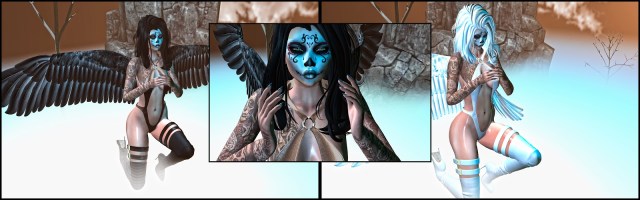 ♥OUTFIT ::ESSENCE:ANGEL OUR DEMON? BLACK AND :ESSENCE:ANGEL OUR DEMON? WHITE @THE DARKNESS EVENT