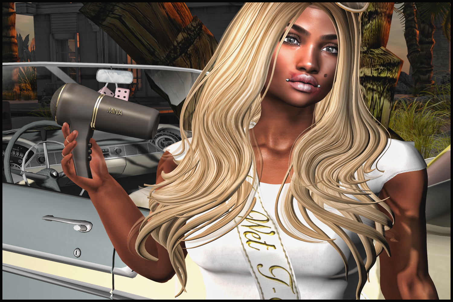 ♥HAIR : MINA – MINA – Hattie – @the ARCADE Hattie is a versatile updo hair with a headband. The hair itself comes with headband textureHUD one, a StyleHUD with lots of options to style the hair (bangs or no bangs, neat or messy bun with curly or more straight tufts) and a fitted and unrigged version.You can also play for more headbandHUDs, each HUD has 6 more textures for you to play with..On top of it all I made 4 sets of matching earrings! The also come with a HUD to change the metal textures and disks. There are 13 commons and 3 rares in the Arcade Gacha machine.The Arcade opens June 1, 2019 @ 12:00 am The Arcade closes June 30, 2019 @ 11:59 pm