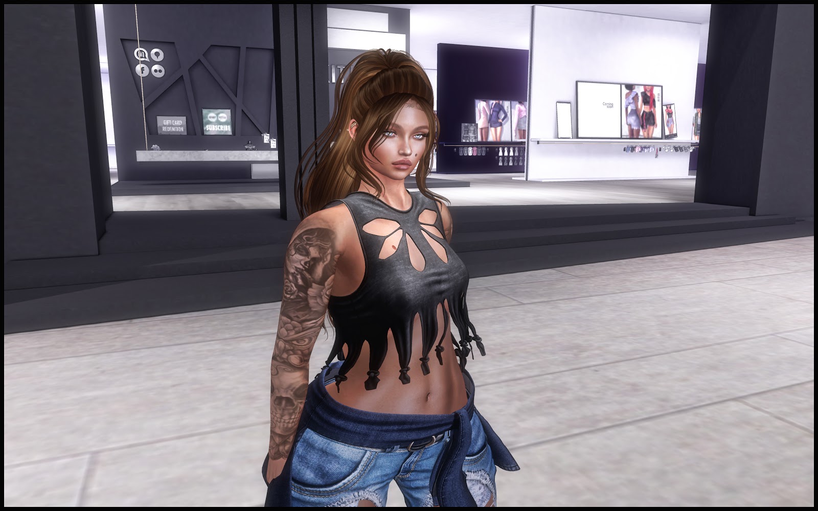 ♥EARRINGS: MINA – Hattie – @the ARCADE @the ARCADE Hattie is a versatile updo hair with a headband. The hair itself comes with headband textureHUD one, a StyleHUD with lots of options to style the hair (bangs or no bangs, neat or messy bun with curly or more straight tufts) and a fitted and unrigged version.You can also play for more headbandHUDs, each HUD has 6 more textures for you to play with..On top of it all I made 4 sets of matching earrings! The also come with a HUD to change the metal textures and disks. There are 13 commons and 3 rares in the Arcade Gacha machine.The Arcade opens June 1, 2019 @ 12:00 am The Arcade closes June 30, 2019 @ 11:59 pm