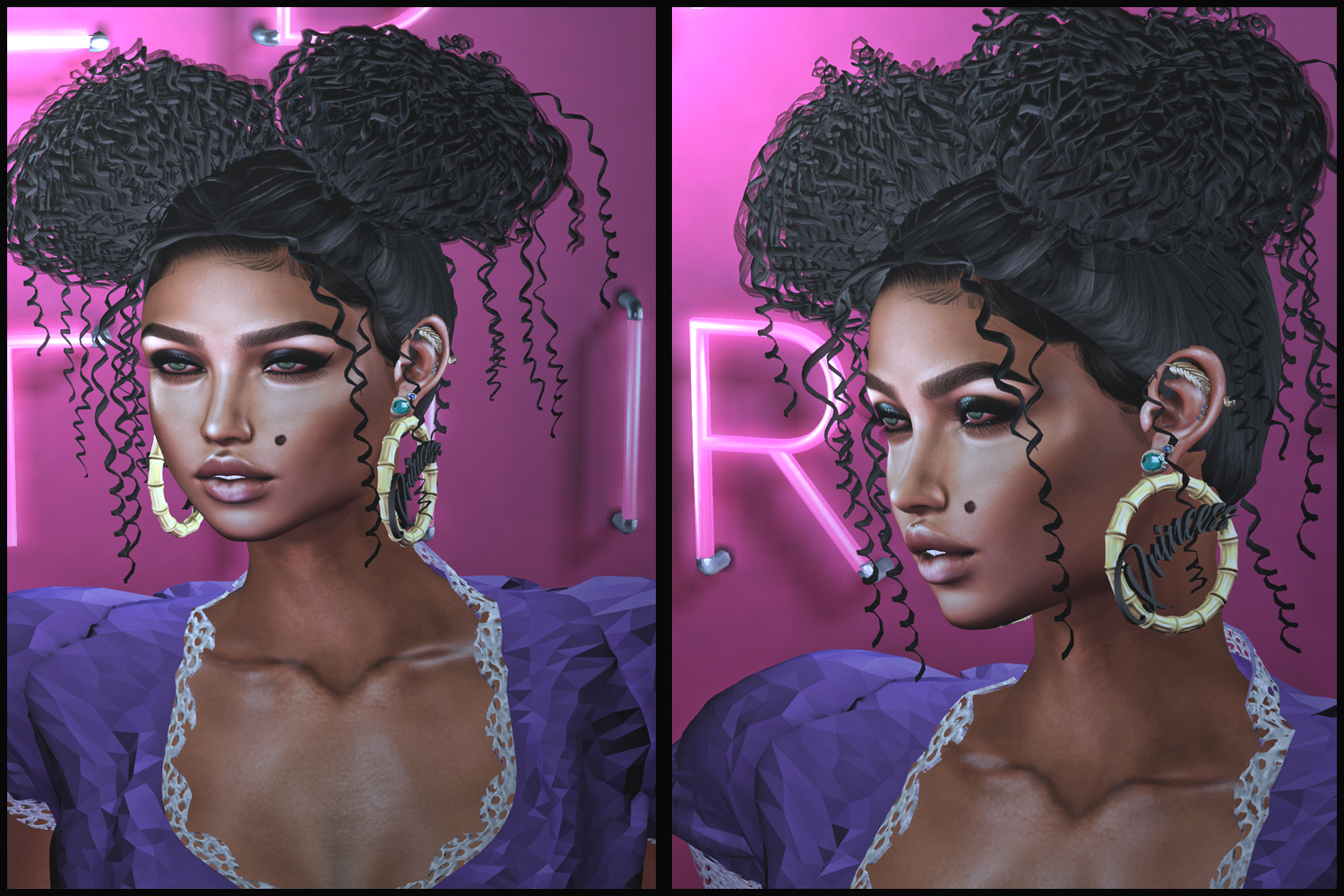 ♥HAIR : ICONIC: NYANE: FATPACK: PACKAGED Mainstore Release: I rarely do what I can consider «cute» hair; however, I got inspire by model and blogger, Nyane Lebajoa’s looked and needed to make this hair. I really adore it and it is SUPER CUTE. I am proud of the work I put into it. I hope you enjoy wearing her as much as I enjoyed creating it.Meet ICONIC Nyane: Multistyler RIGGED mesh – Try the DEMO with your mesh heads. Tested on Catwa, Lelutka, Genesis and LAQ Multiple options to wear bangs, no bangs, wisp, and more wisps,